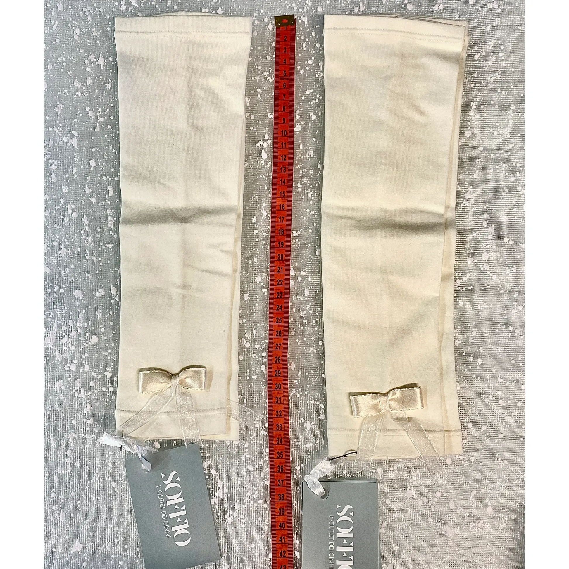 - Dettaglio Romantico: Il fiocco doppio (in raso e organza) applicato sul polsino dona un tocco romantico e sofisticato, rendendoli perfetti anche per occasioni più formali o per un abbigliamento da damigella.
